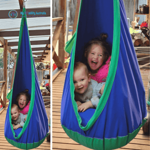 Hammock swing chairs are useful resources for anyone who seeks out gentle vestibular input (movement). The shape and design of these hammocks provide a safe and secure cocoon like feeling when you sit in it.