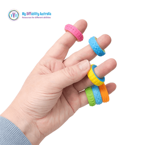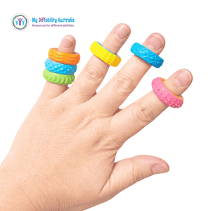 These bands offer a quiet, portable fidget option that supports sensory modulation without causing distraction. Suitable for kids through to adults; adults may find bands can only be worn on the upper parts of fingers depending on finger size. Please check measurements when deciding if this resource is right for you.