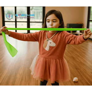 Tie to the legs of chairs allowing children to gain proprioceptive input by pushing or bouncing against it. Use it for pull and push games or even for gross motor work.