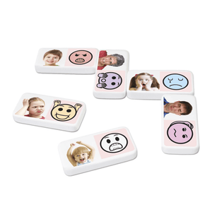 Help children explore and understand their feelings with Emotions Dominoes, a hands-on and interactive learning tool designed to teach emotional recognition and expression. This set includes 28 thick, durable plastic dominoes, each featuring colourful images representing a variety of emotions such as happy, sad, angry, surprised, and more.