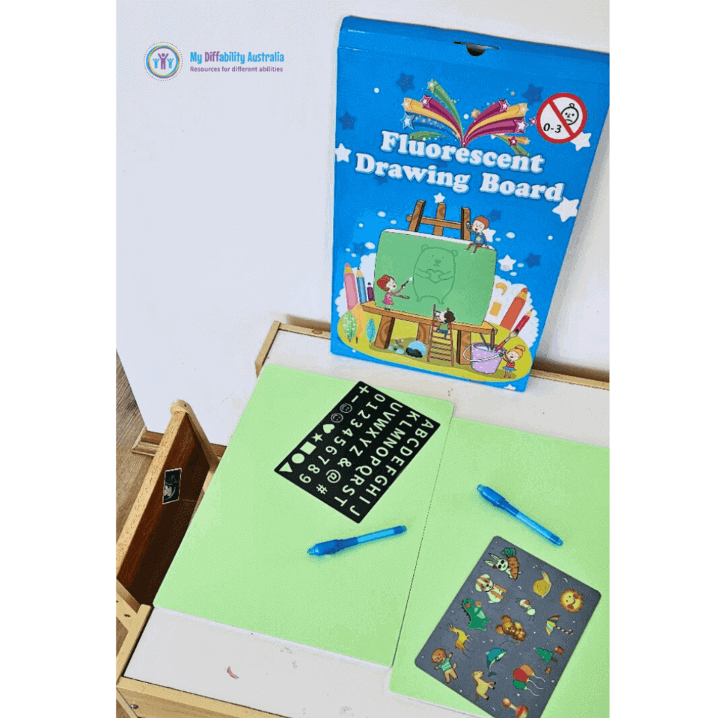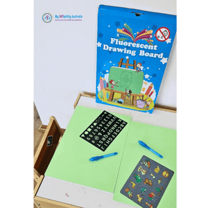 Each board also comes with a set of stencils that make a captivating addition to the set. Move the light over the stencil to transfer the picture to your light up board.