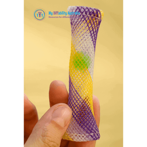 These multi-coloured marble mesh fidgets are a fun tactile resource for fidgeting in the hands. Each fidget has a marble inside a mesh casing. The marble can be pushed up and down and fidgeted with between the fingers.
