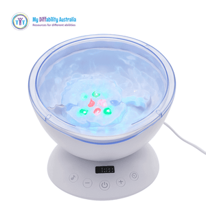This ocean wave projector creates a calming and mesmerising sensory environment. Great for use in a dark room, dark den, sensory space or calming area. The projector is able to display 7 Colourful light modes for different effects and feelings. In addition to the light display, the projector also has a self-contained music function with 4 sounds to choose from. In-built sounds can be muted if preferred, or you can play your own music through the projector by plugging in your phone, computer, tablet or via the card port. Easy to operate with a range of functions.