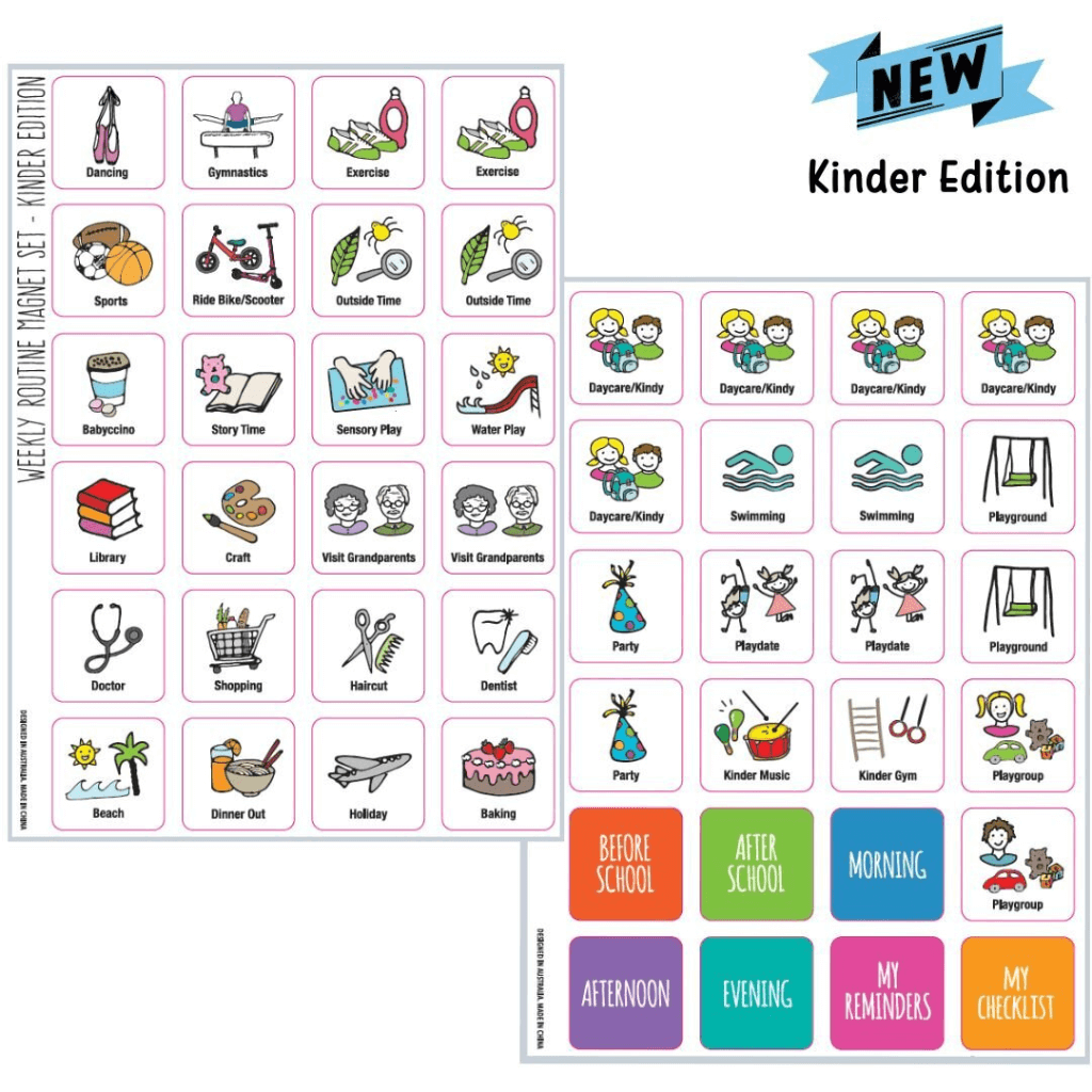The Weekly Routine Chart Set (Kinder Edition) by Prepp'd Kids is an awesome visual support for your kinder-aged child. It offers a modern and functional take on a traditional weekly visual schedule. Designed to visually depict the major activities happening each week. Think of it like a weekly calendar for your child.